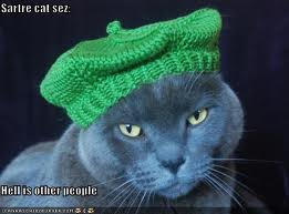 1°) un réflexe que j’ai depuis mon enfance lié à l’idée que les Autres = danger. (Dès mes deux ans, j’ai eu des intuitions sartriennes.)